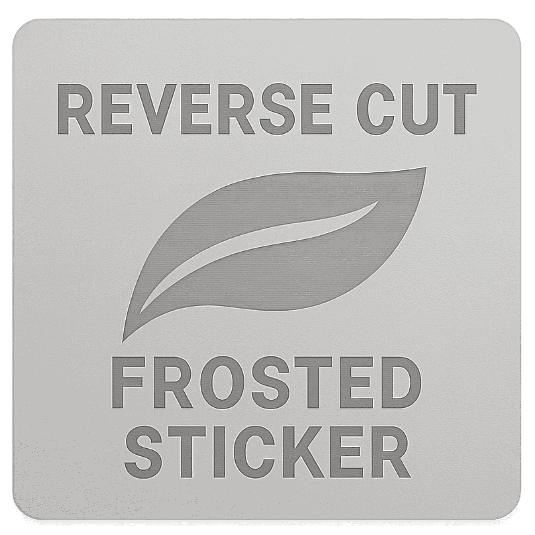Premium reverse cut frosted stickers for a sleek, modern, and professional look on windows, glass, or promotional materials.